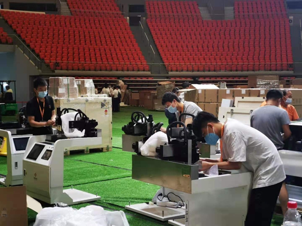 加班加点建设“猎鹰号”气膜实验室,从实验室搭建到仪器的安装、调试一步步入手,因为没有空调,工程师们的衣服汗湿了又干,干了又湿。时间就是生命,几天内工程师们不顾工作环境的艰苦,安装调试了数百台核酸检测仪器,并在6座气膜实验室中迅速投入使用。
