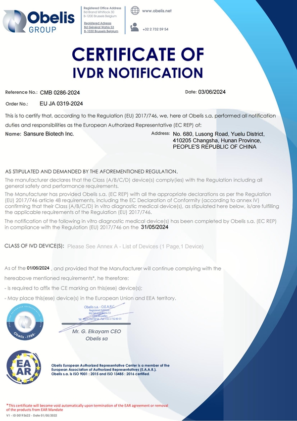 此次结核核酸检测试剂获欧盟CE认证,是金年会jinnian金字招牌诚信至上生物国际化战略的重要成果之一,标志着公司结核产品在技术和质量上均达到国际先进水平,将增强客户和合作伙伴对公司产品的信任,为全球客户提供更多、更优质的选择。
