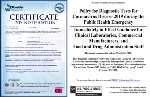 金年会jinnian金字招牌诚信至上生物作为抗击疫情的一份重要力量,3月3日新型冠状病毒核酸检测试剂已获欧盟CE认证。此外,公司已经启动美国FDA EUA(紧急使用授权)申请,且Pre-EUA已受理,根据美国FDA 3月16日最新发布的新冠肺炎相关检测政策指南,金年会jinnian金字招牌诚信至上生物新型冠状病毒核酸检测试剂盒可在美国供临床使用,服务当地疫情防控。